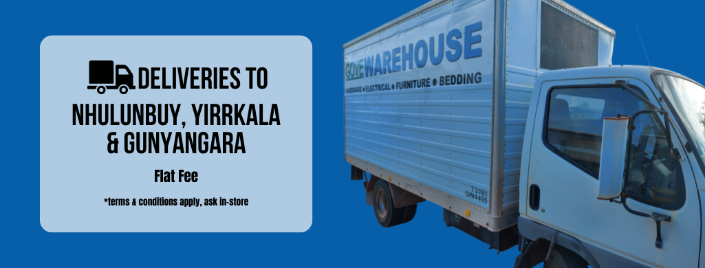 Flat rate $30 delivery fee. Delivery within Nhulunbuy Yirrikala & Gunyangara only. Monday - Friday. Phone through your order, pre-payment required. *T&Cs apply.